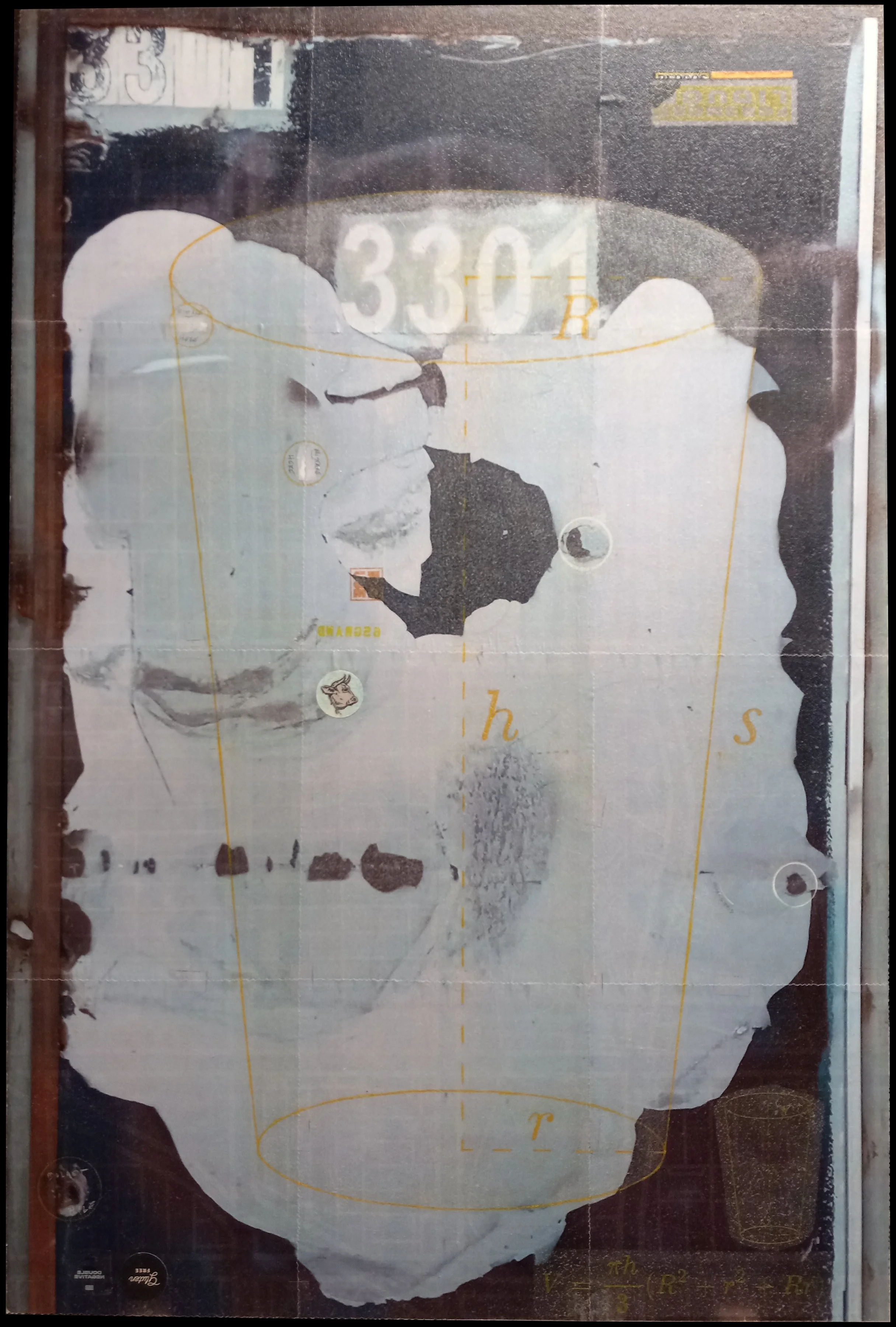 From 2453 N Albany Ave #2, Digital Prints with Mixed Media and Collage on Wood Panel, 36”x24”, 2025