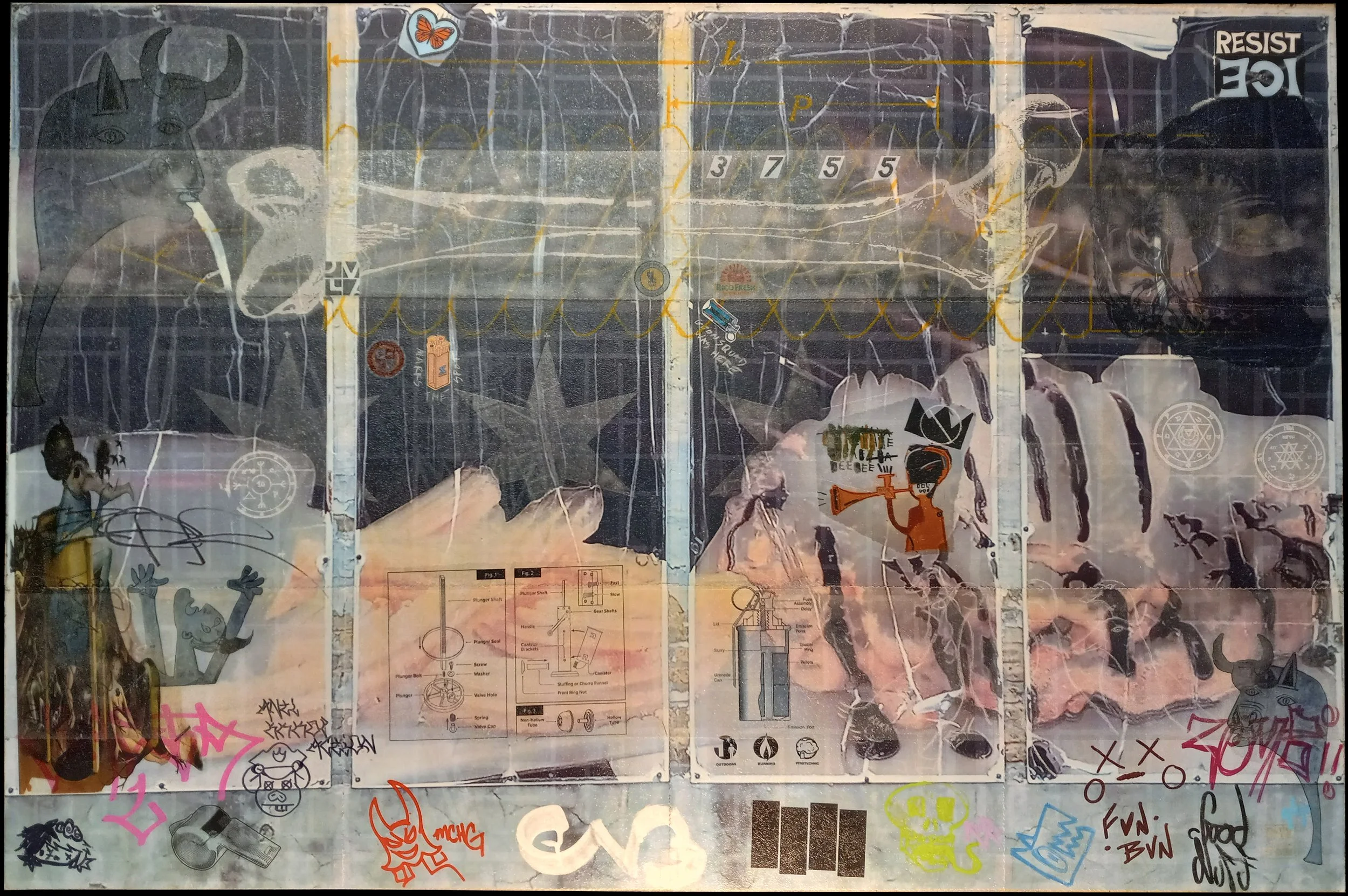 From 1513 N Western Ave #2, Digital Prints with Mixed Media and Collage on Wood Panel, 36”x24”, 2025